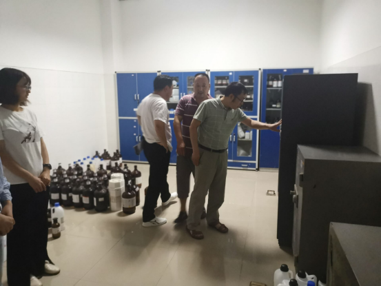 在资源与环境学院,检查组通过重点场所巡查、资料检查、座谈三种方式开展工作。首先,检查组到化学品药品库房、废液中转站、涉危实验室、监控中心等场所,针对药品储存柜、通风系统、监控系统、警报系统等安全设施的情况进行了检查。其次,详细检查了危险化学药品购买清单、61种危险药品和14种易制毒药品的使用情况和存量信息、药品领用登记记录本、废液处置记录等。最后,通过与资环学院院长、实验室主任、实验室管理员座谈,了解危化品管理制度、流程、运行等基本情况。