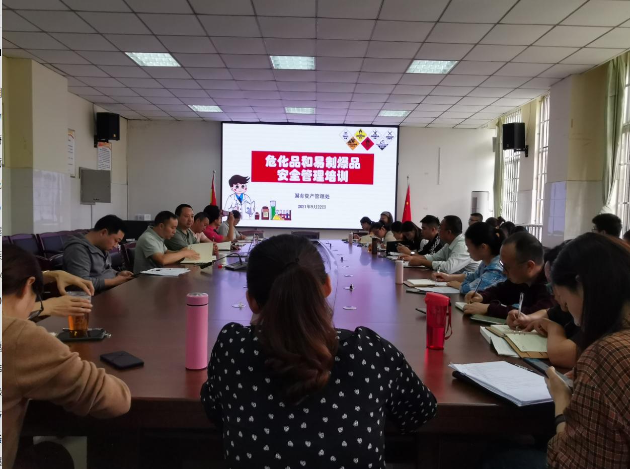 为进一步加强危化品和易制爆药品的管理,由国有资产管理处牵头,保卫处、资源与环境学院于2021年9月22日下午共同举办了“危化品和易制爆药品安全管理”专题培训。资源与环境学院全体教师、国有资产管理处副处长(主持工作)杨双华、资环学院副院长(主持工作)杨子松、副书记(主持工作)余列、副院长王丽华同志、保卫处杨锐同志、国资处实验实训管理科邓文博同志参加了本次培训。