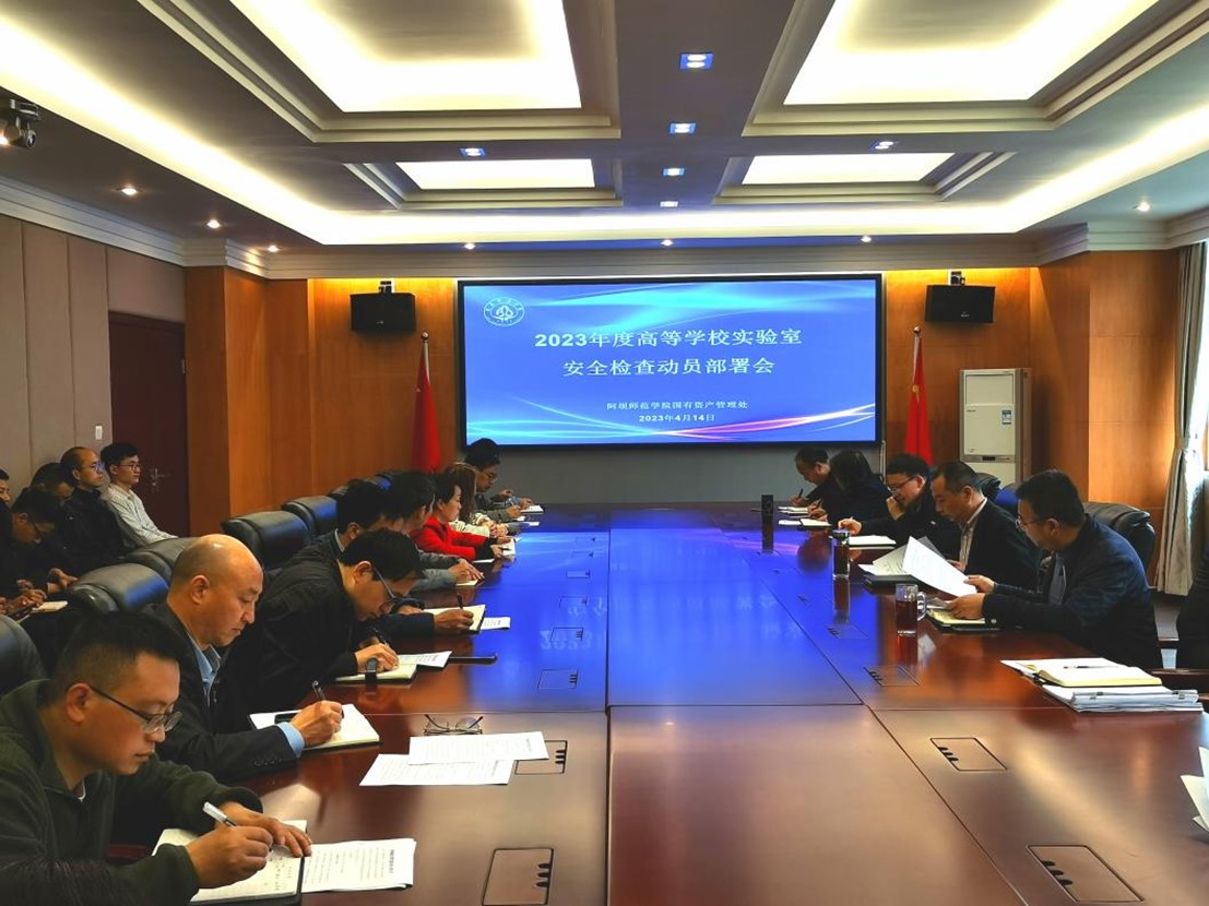 2023年4月14日上午,我校在行政办公楼416室组织召开了2023年度高等学校实验室安全检查动员部署会,党委常委、副校长宋弘同志、各二级学院行政主要负责人、实验室主任、实验室管理人员及国有资产管理处等职能部门参加了本次会议,会议由国有资产管理处处长覃才林同志主持。